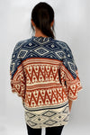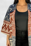 Ruana Manga Corta Bolsillos Rombos Terracota